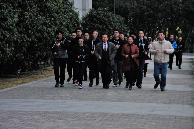 当天下午,郑家茂书记带领着070183团支部全体同学进行了一次别开生面的跑步热身活动,虽然寒风凛冽,郑书记与大家亲切互动,同学们跑得身上和心里都暖洋洋的。