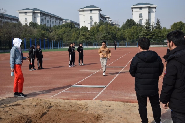 铅球场上,运动员们向铅球发起了挑战。蓄力,掷出,铅球划出一道优美的抛物线,稳稳落在沙地上;而另一角的沙坑,跳远刚刚开始检录的时候,沙坑周围就围了一些观战的小伙伴。踩上踏板,蹬地而起,沙坑中,运动员留下一对脚印。