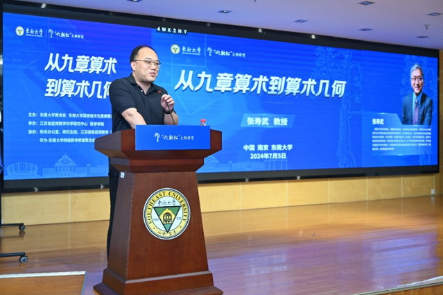 7月5日上午,著名数学家、普林斯顿大学教授、美国艺术与科学院院士张寿武做客动画疯 “六朝松”大讲堂,为东大师生带来一场题为《从九章算术到算术几何》的精彩学术报告。动画疯 相关职能部处、院系负责人及各学院师生200余人聆听报告。