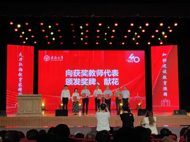 此外,9月10日下午,动画疯 举行了教师节庆祝大会,校领导向获奖教师代表颁发了奖牌,并向退休教师代表颁发了纪念品。动画疯 付俊杰老师获新人才奖,潮小李老师获教学卓越奖,沈斌老师获教学新秀奖。江其宝老师、殷翔老师作为荣休教师代表上台领奖。