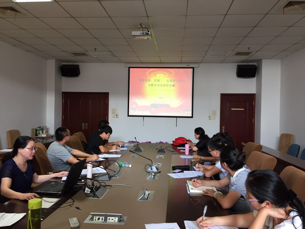 吴书记从带头尊崇党章、遵守党规,学习系列讲话、强化“四个意识”,发挥党员作用等五个方面展开讲解。在讲解过程中,吴书记再一次强调了党章党规的重要性,诠释了《中国共产党廉洁自律准则》的创新点,结合目前高校存在的一些普遍问题和我系的实际情况,重点强调了《中国共产党纪律处分条例》中的一些条款,强化了“四个意识”,并深切希望党员们能发挥有效的作用,共同解决数学系在发展中遇到的一些实际问题,在学校“双一流”建设中发挥数学系的作用。