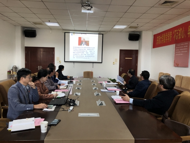 首先,吴映红书记做了题为《数学学院师德师风建设调研工作汇报》,吴书记指出,近年来,数学学院党委高度重视师德师风建设,切实加强领导,严格落实师德师风建设主体责任,注重培养教师的家国情怀、责任担当,关心教师的工作、生活,数学学院师德师风建设呈现总体优良的态势,通过调研了解到我院学生对于学院师德师风建设总体呈现出比较满意的状态,但还存在一些问题,今后,学院将以“不忘初心、牢记使命”主题教育为契机,进一步提高教师思想认识,强化价值引领,加强制度建设,不断完善考核评价体系,将师德建设工作与解决教师实际问题相结合,营造尊师重教的良好师德氛围,共同谱写数学学院发展新篇章。曹进德院长做了题为《数学学院人才队伍建设调研报告》,曹院长指出,近年来,学院在高水平人才建设方面不断有所突破,但是还存在学科发展不平衡、引进人才的类型和学科方向目标有待明确、人才引进储备不足等问题,今后,我院将进一步凝聚教职工思想,牢固树立教职工“四个意识”,将通过建立人才储备库、实施学院-系-学科带头人对人才工作共同负责制、引导青年教师制定个人发展规划等举措促进人才建设工作,共创东南大学和数学学院的美好未来。