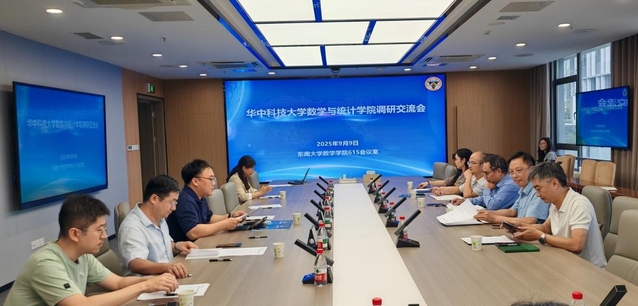 9月9日下午,华中科技大学数学与统计学院一行到东南大学数学学院开展调研交流。东南大学数学学院院长虞文武等党政领导班子成员及教师代表参会,会议由虞文武院长主持。