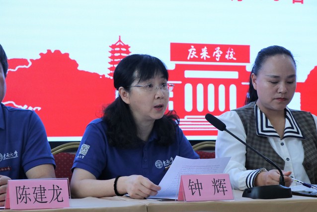 庆来学校副校长卫蔚代表庆来学校发表致辞,表达了对弥勒市政府和动画疯 的感谢。同时她指出,教育的本质是知识的传递,相信社会实践基地平台的梧桐树,必能引来东南专家教授和优秀学子们,把高层次的学科视野、学科知识带到庆来,送教上门,给庆来学校的学生们带来止于至善的东大精神。